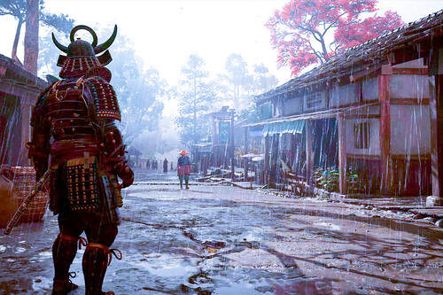 Desde el brillo de la luz de las linternas en los tejados resbaladizos por la lluvia hasta el susurro de los cerezos en flor en el viento, cada detalle está diseñado para sumergirte más profundamente en el Japón feudal.